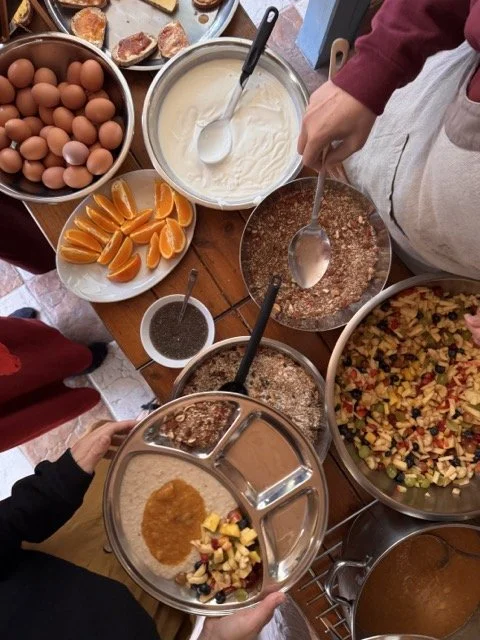 Meals are a communal affair and an opportunity to share space with the sangha in a relaxed, informal way.